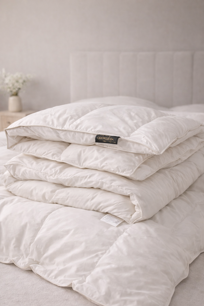 Ковдра “Cataleya Diamond Standard” — це поєднання абсолютної легкості та комфорту. Наповнювач: 100% пух, що забезпечує ніжне тепло, а чохол зі 100% білої бавовни додає натуральності. Ковдра легка, майже невагома, ідеально підходить для щоденного використання.