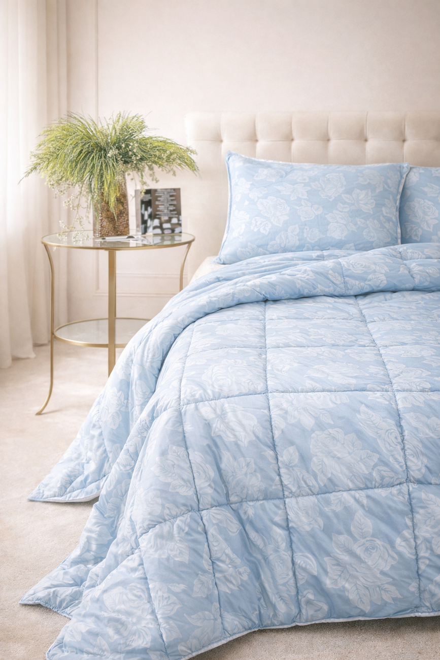 Cataleya Gentle Bloom Light — це полегшена літня ковдра, що дарує невагому легкість, але при цьому забезпечує приємне тепло завдяки пуху. Наповнення: 80% пуху, 20% пера. Чохол: 50% поліестер, 50% бавовна. Доступна в кольорах: рожева троянда, блакитна троянда, жовта троянда. Це ідеальний вибір саме для літнього сезону, коли потрібна легкість без компромісу щодо комфорту. Ми є сертифікованими виробниками, співпрацюємо з найбільшими гіпермаркетами, готові до експорту. Пропонуємо лояльні умови опту та дропшипінгу, а також надійну співпрацю