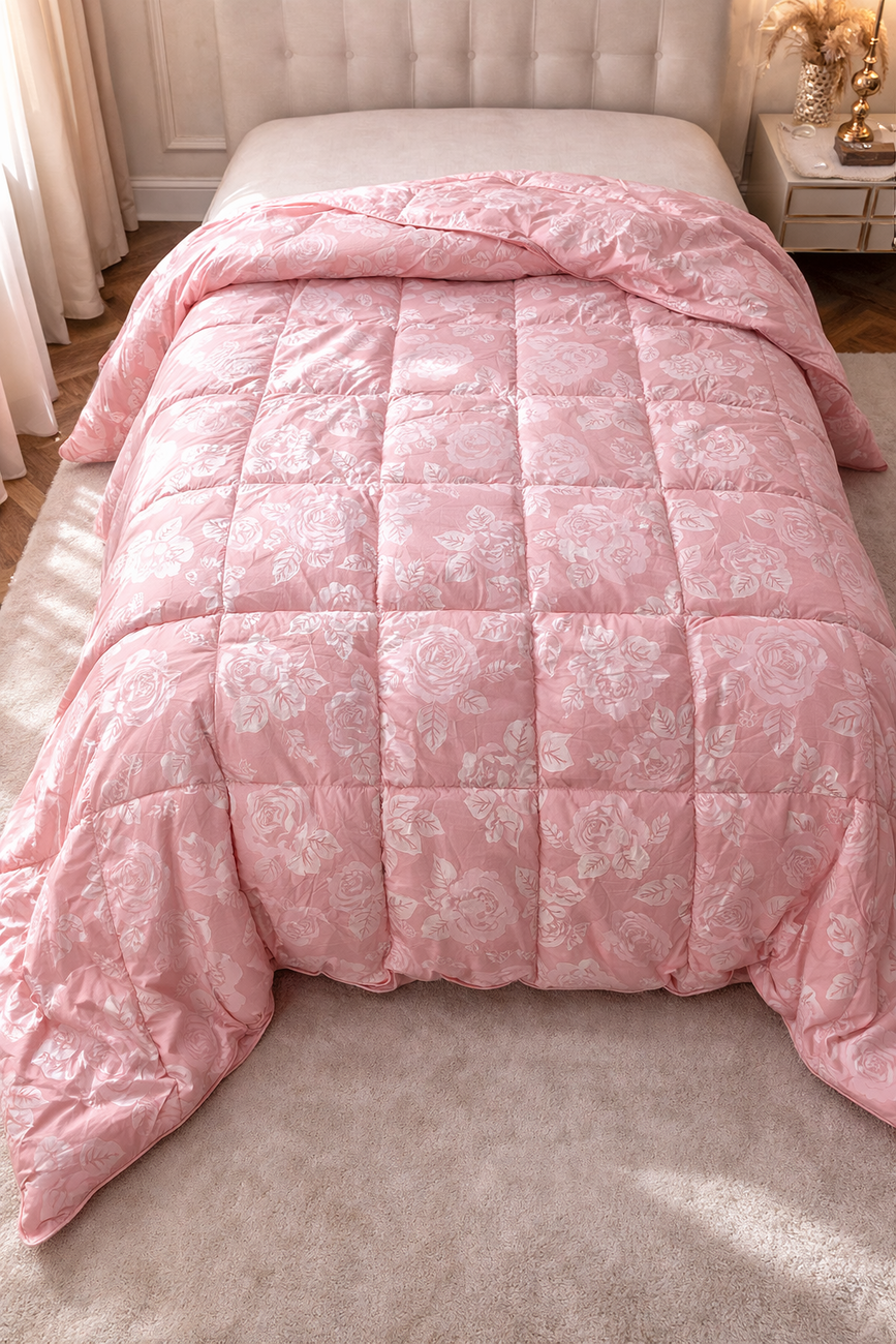 Cataleya Gentle Bloom StrongFill — це ковдра з посиленою набивкою: 50% пуху, 50% пера. Чохол: 50% поліестер, 50% бавовна. Ця ковдра створена для найхолодніших зим: вона дуже тепла завдяки щільній набивці. Хоч вона в міру важкувата, саме ця приємна вага огортає затишком. Доступна в кольорах: рожева, блакитна, жовта троянда. Це ідеальний вибір для тих, хто особливо мерзне зимою і шукає справжнє тепло. Ми — сертифіковані виробники, працюємо з найбільшими гіпермаркетами, готові до експорту, опту, дропшипінгу на лояльних умовах.