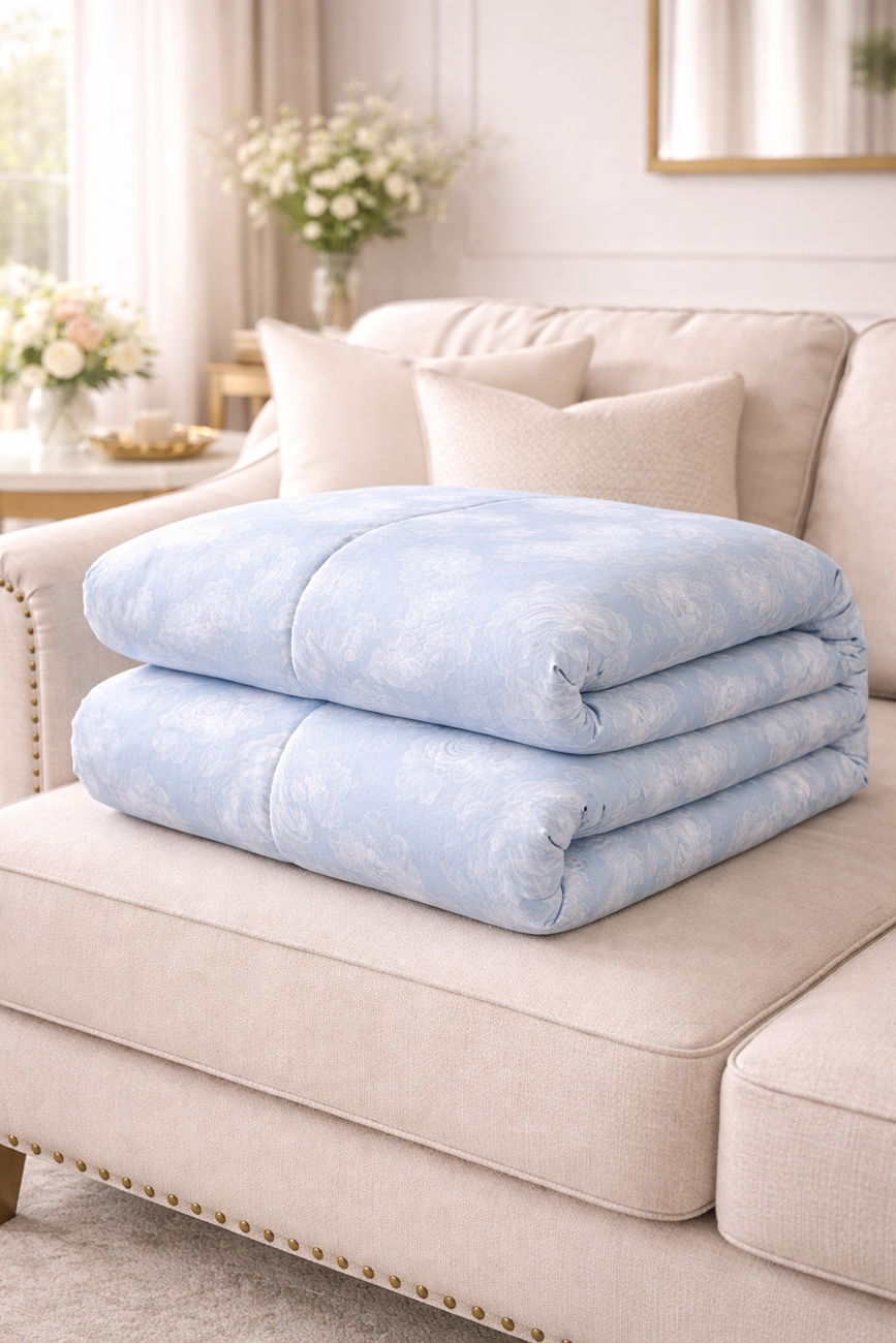 Cataleya Gentle Bloom Standart — це ковдра зі стандартним наповненням: 80% пуху, 20% пера. Чохол: 50% поліестер, 50% бавовна. Ми пропонуємо її в кольорах: рожева троянда, блакитна троянда, жовта троянда. Ця ковдра — в міру легка, дуже тепла, з оптимальним додаванням пера. Вона створена саме для наших холодних зим, щоб ви відчували комфорт і тепло, на яке можна покластися. Ми — сертифіковані виробники, співпрацюємо з найбільшими гіпермаркетами, готові до опту, дропшипінгу та партнерства на лояльних умовах.