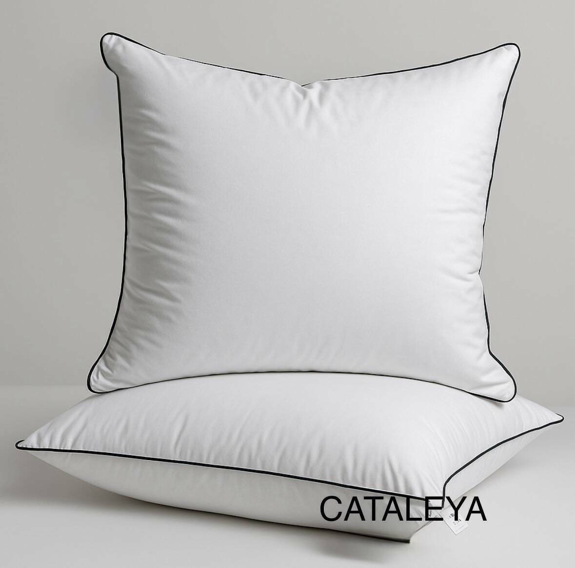 CATALEYA White Royal Down — це подушки, наповнені 100% елітним пухом. Їхній чохол — 100% бавовна у білому кольорі. Доступні різні розміри: 90x60, 80x80, 70x70, 50x70, 60x60, 50x50, 40x40 та 40x60. Виконуємо індивідуальні замовлення. У комплекті: сумка для зберігання та інструкція по догляду. Ми — сертифіковані виробники, використовуємо натуральні тканини та екологічно чисті натуральні наповнювачі. Маємо всі відповідні сертифікати. Працюємо з найбільшими гіпермаркетами, готові до експорту. Для опту та дропшипінгу діють лояльні умови.